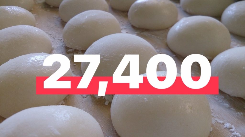 1,370,000g ÷ 50g = 27,400個